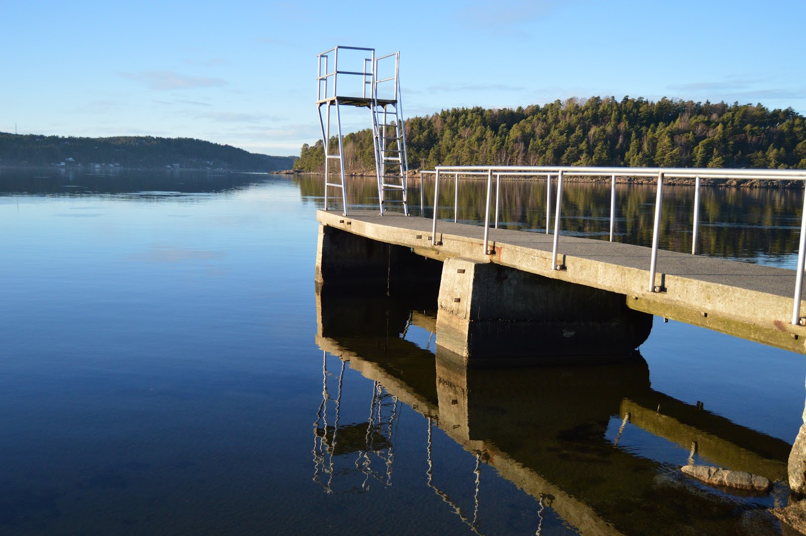 Legge merke til hvordan vannet gir stupetårnet anledning til å speile seg.
